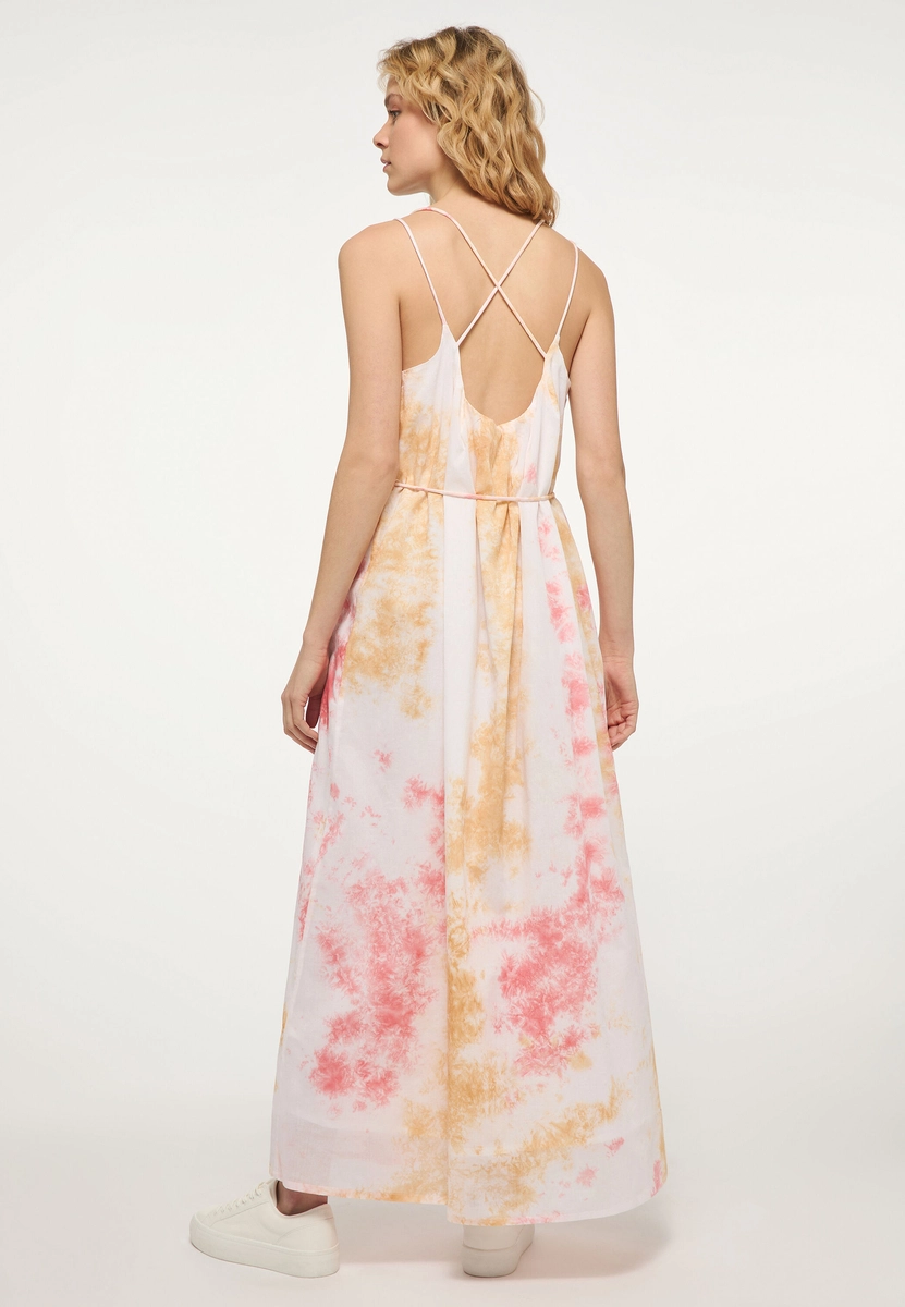 Dieses Mustang-Kleid besticht auf den ersten Blick durch seinen herrlichen Retro-Look. Aus weicher Baumwolle gefertigt, bietet sie Atmungsaktivität und Leichtigkeit, und mit dem praktischen Bindegürtel kann die Weite individuell angepasst werden. V-Ausschnitt, Spaghetti-Träger und Batik-Design verleihen dem Modell einen romantischen Touch.