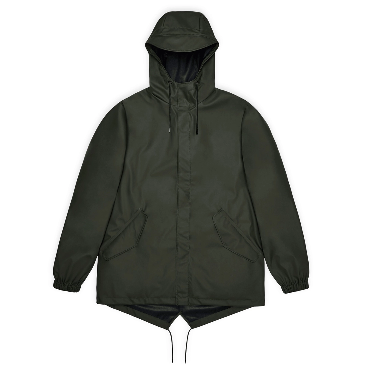 Fishtail Jacket ist ein Unisex-Mackintosh. Mit stromlinienförmiger Ästhetik und Fishtail-Rahmen.