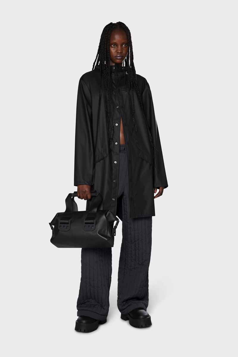 Long Jacket ist eine längere Version des klassischen Rain, Jacket Designs. Diese immer aktuelle Unisex-Regenjacke bietet hohe Funktionalität in einer minimalistischen Silhouette. Zur Ausstattung gehören doppelt geschweißte, schräge Pattentaschen, verstellbare Manschetten und Fischschwanzpaspeln. Druckknöpfe, Achselschlaufen und eine Rückenpasse mit verdeckten Schlitzen runden den Look ab.
