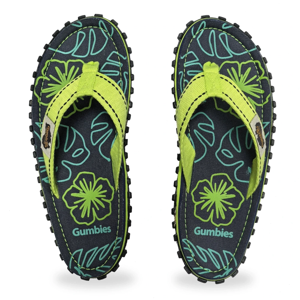 Gumbies iSLANDER FLIP-FLOPS LIME HIBISCUS flip flops