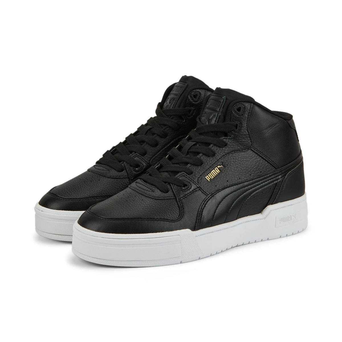Der Schuh CA Pro lehnt sich an das Originalmodell California aus den 1980er Jahren an. Sie zeichnen sich durch eine Kombination aus klassischem und modernem Stil aus, sowie durch eine perforierte Vorderseite - wie beim Originalmodell -, markante Panels und den charakteristischen PUMA Formstrip. Die Socke reicht bis knapp über den Knöchel und unterstreicht das sportliche Styling.