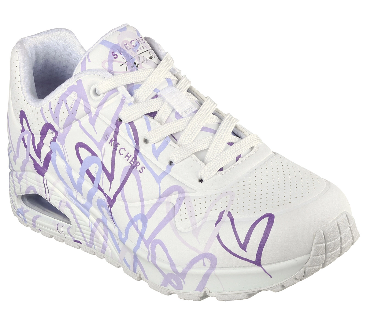 Der international bekannte Wandmaler James Goldcrown präsentiert seine ikonischen #Lovewall-Herzmotive als Teil einer inspirierenden Zusammenarbeit mit Skechers. Zeigen Sie Ihren kreativen Stil mit Skechers x JGoldcrown: Skechers Street™ Uno -B Spread the Love. Gestufte, modische Sneaker mit dem charakteristischen Herz-Print des Künstlers auf der Außensohle, Obermaterial aus Synthetikleder mit Perforationen und Skechers Air-Cooled Memory Foam® Einlegesohle auf dem Spann und sichtbarer Skech-Air® luftgepolsterter Zwischensohle.