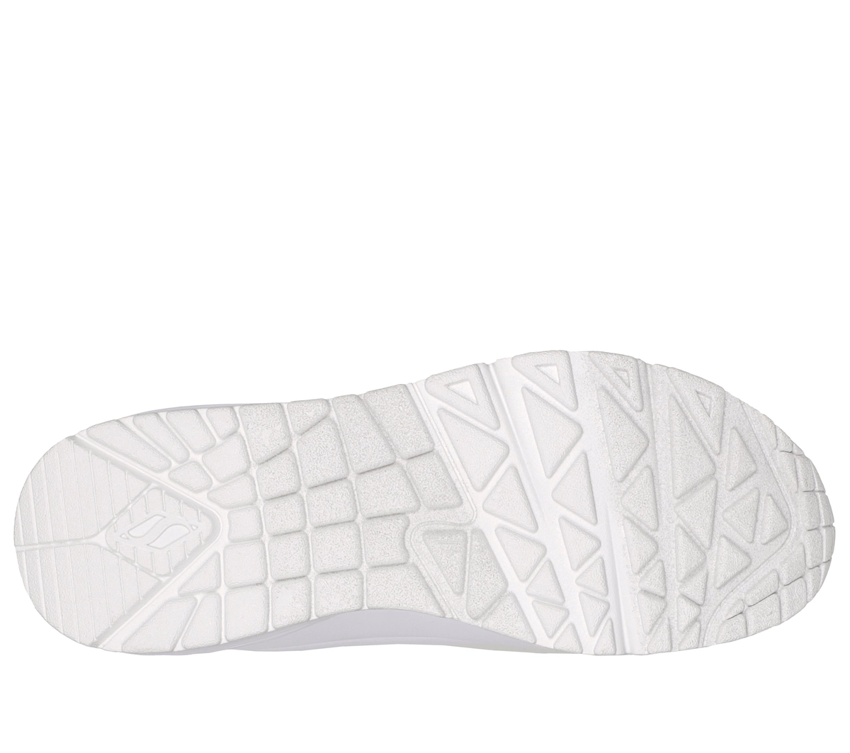 Neue Iteration des klassischen, bequemen Skechers Street™ Uno Dämpfungsschuhs - Stand on Air. Gestuftes, modisches Design mit Obermaterial aus glattem Synthetikleder und Perforationen sowie Skechers Air-Cooled Memory Foam Einlegesohle und sichtbare Skech-Air gepolsterte Zwischensohle.