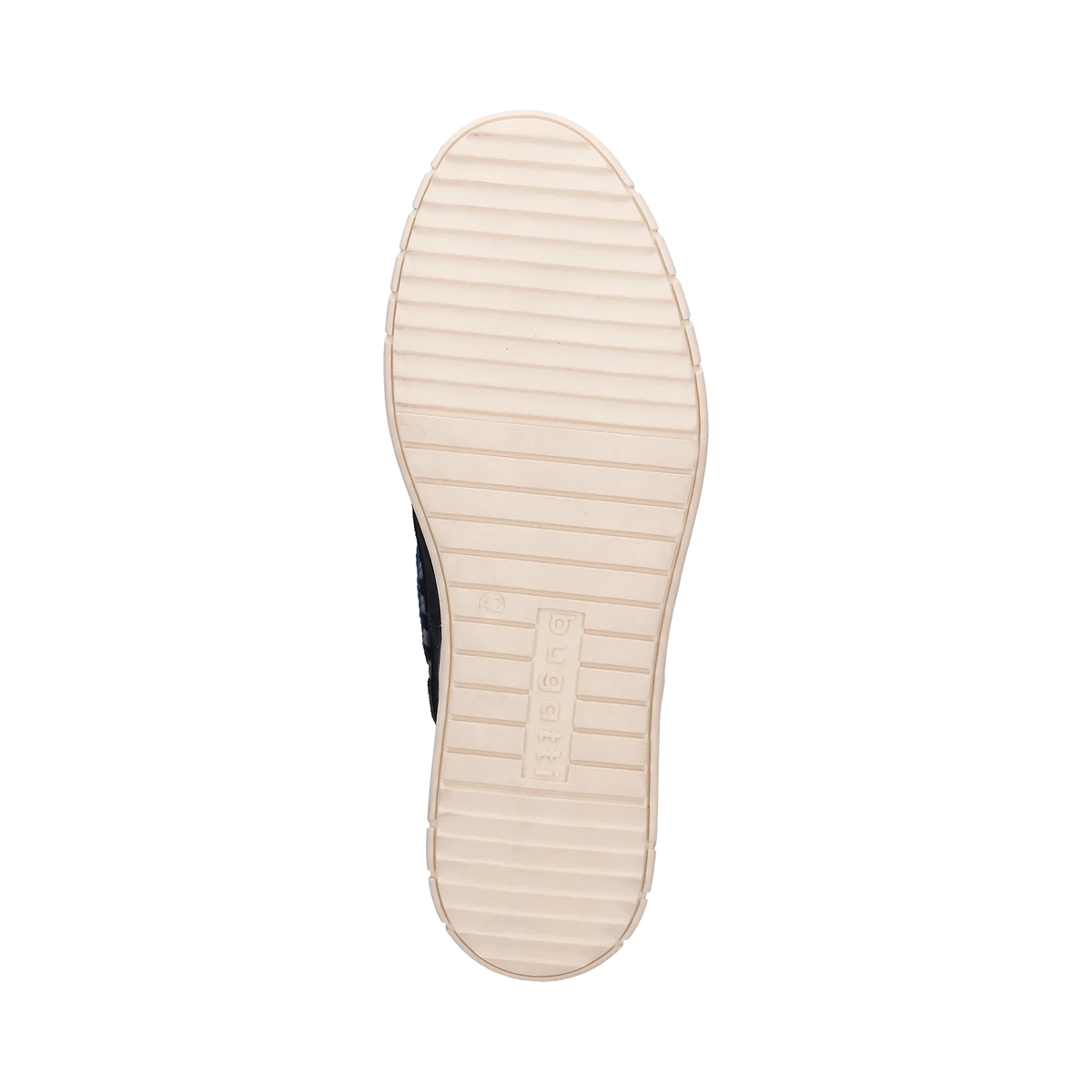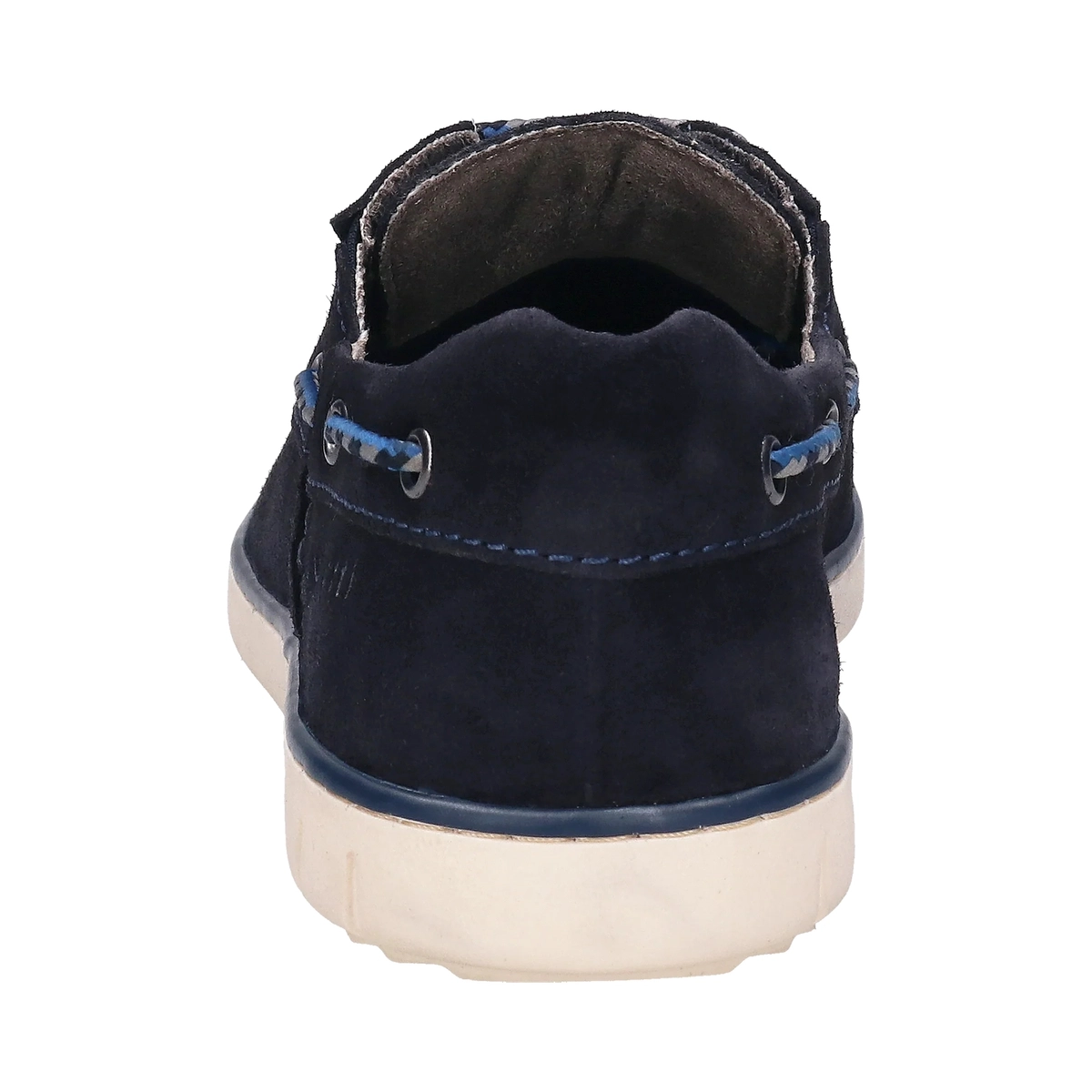 Diese hybriden dunkelblauen Schnürschuhe im Mokassin-Look haben interessante Nähte und Metallreifen für seilartige Riemen in Kontrastfarbe. Sie sehen nicht nur besonders cool aus, sondern sind dank der formanpassenden Schaumstoffeinlagen auch bequem. Und ihre Außensohle hat auch eine Soft-Flex-Funktion.