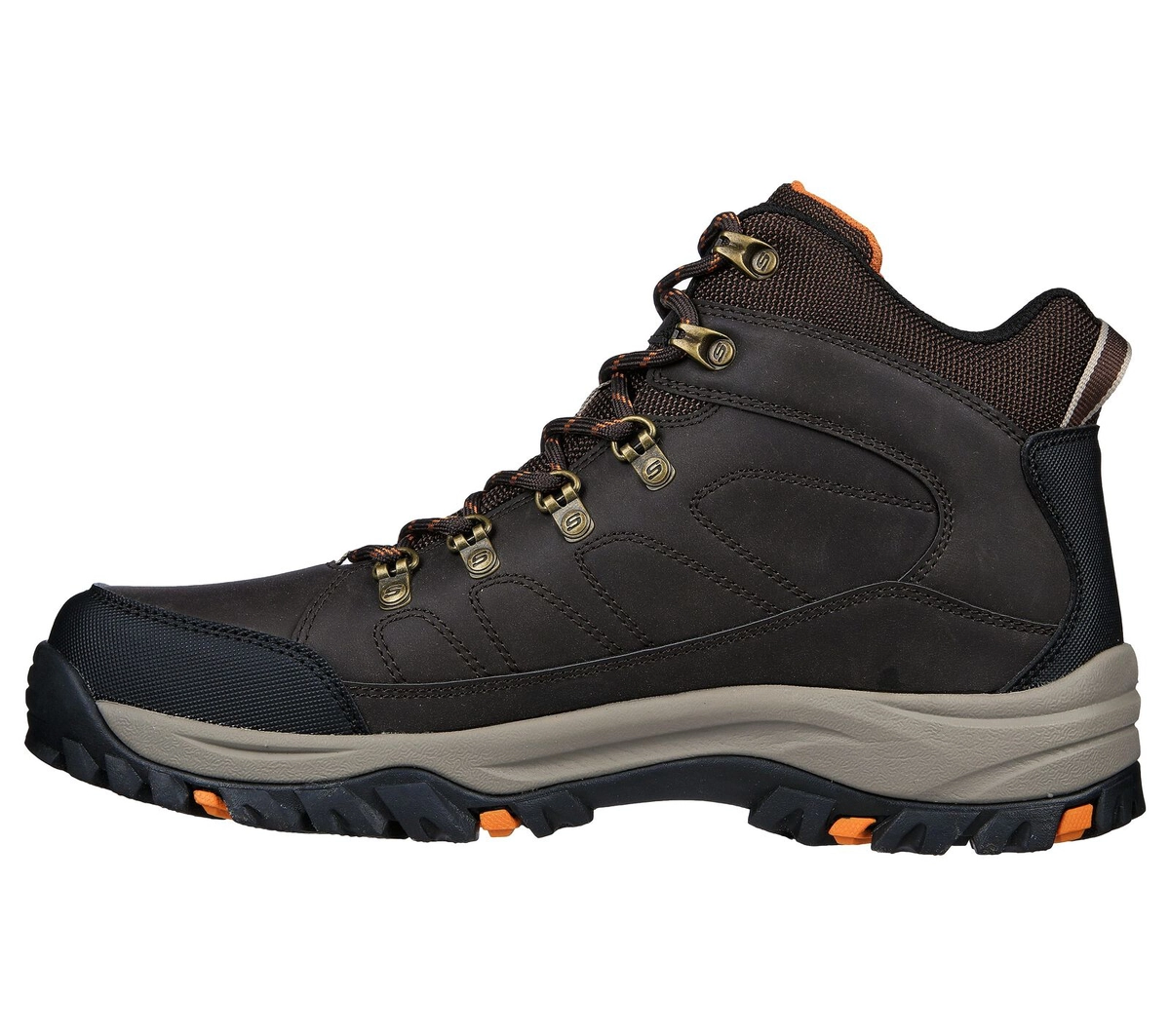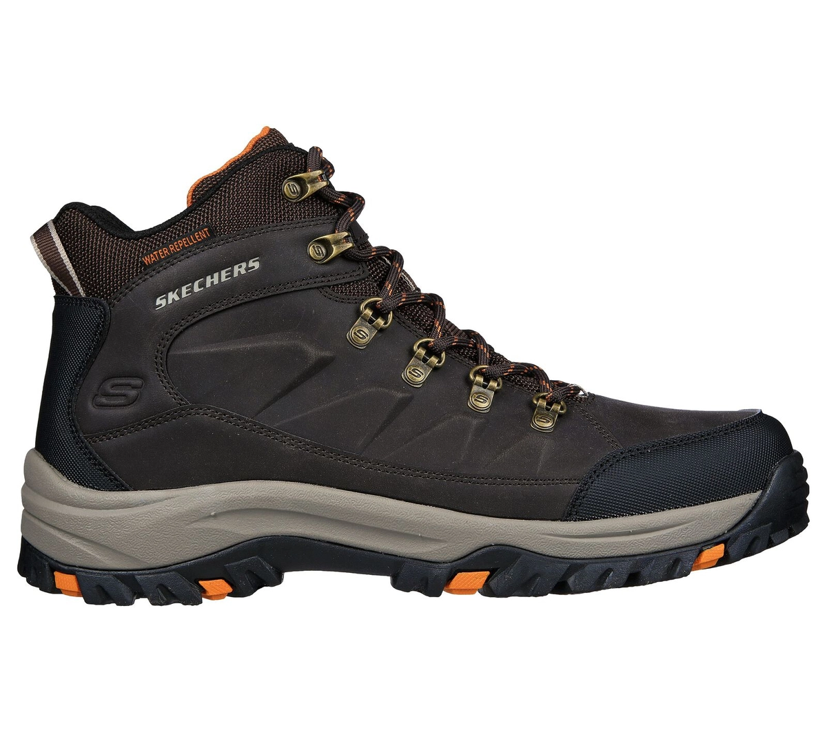 Abenteuer, Ausdauer, Komfort und Unterstützung - Skechers Relaxed Fit®: Relment - Daggett. Stufenförmiger Trail-Schuh mit wasserabweisendem Obermaterial aus Leder und Mesh und einer Air-Cooled Memory Foam® Dämpfungssohle.