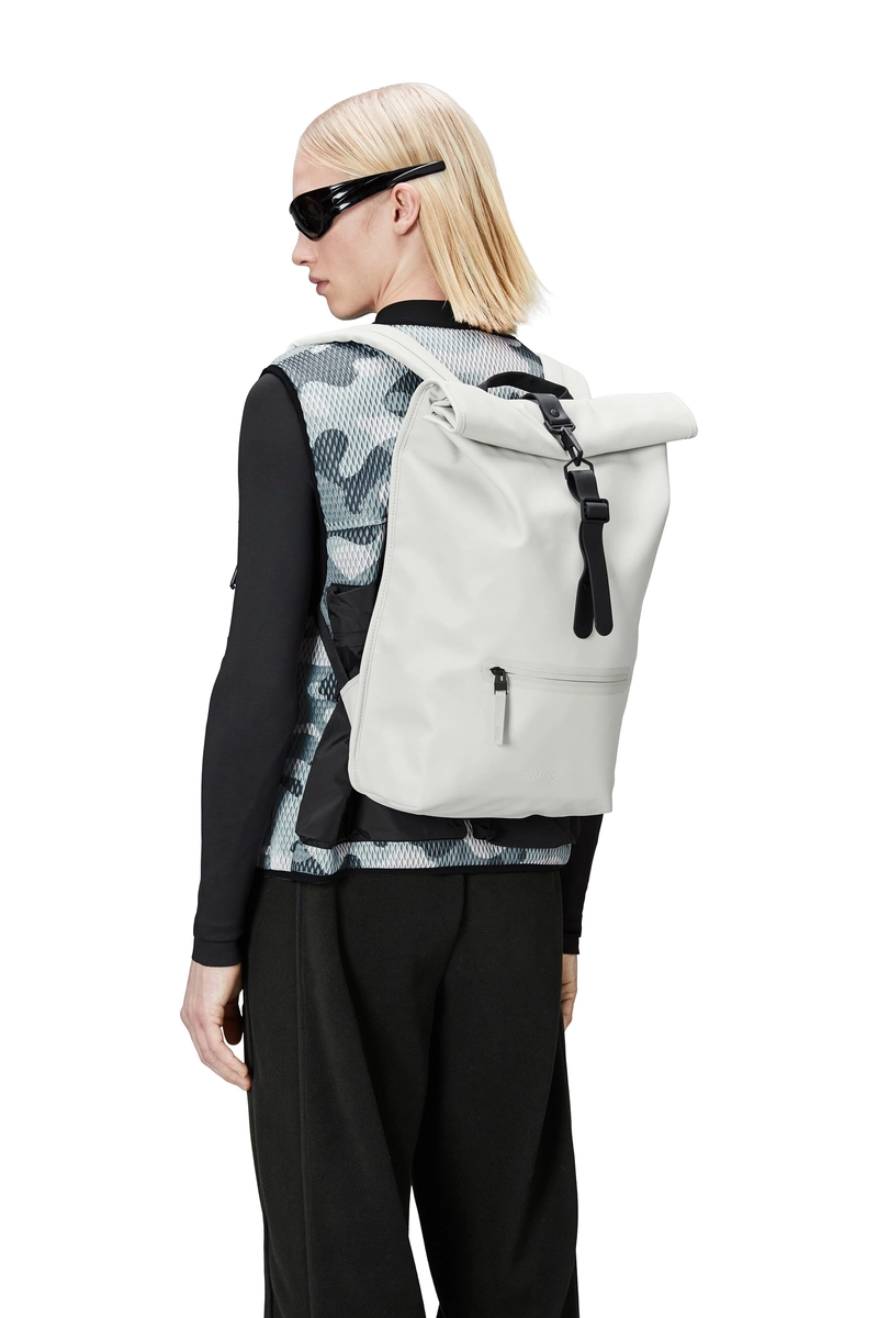 Plecak Rolltop jest wykonany z charakterystycznej dla firmy Rains wodoodpornej tkaniny PU, zaprojektowanej z myślą o wytrzymałości, trwałości i gładkości.
