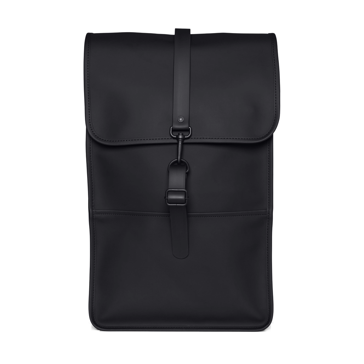 Die Silhouette des Rucksacks ist ein Rains-Klassiker und zeichnet sich durch eine hervorstehende Klappe und einen zentralen Riemen mit Karabinerverschluss aus. Dieser schlichte und stets moderne, wasserdichte Rucksack verfügt über ein Laptop-Innenfach, ein geräumiges Hauptfach und ein verstecktes Handy-Außenfach auf der Rückwand.