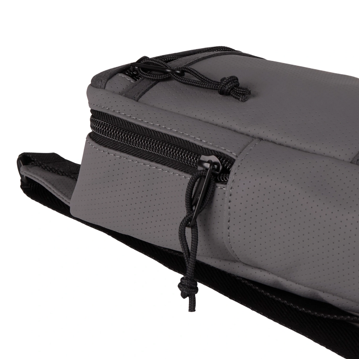 Die Haupttasche mit Reißverschluss bietet Platz für ein Telefon oder eine Brieftasche.