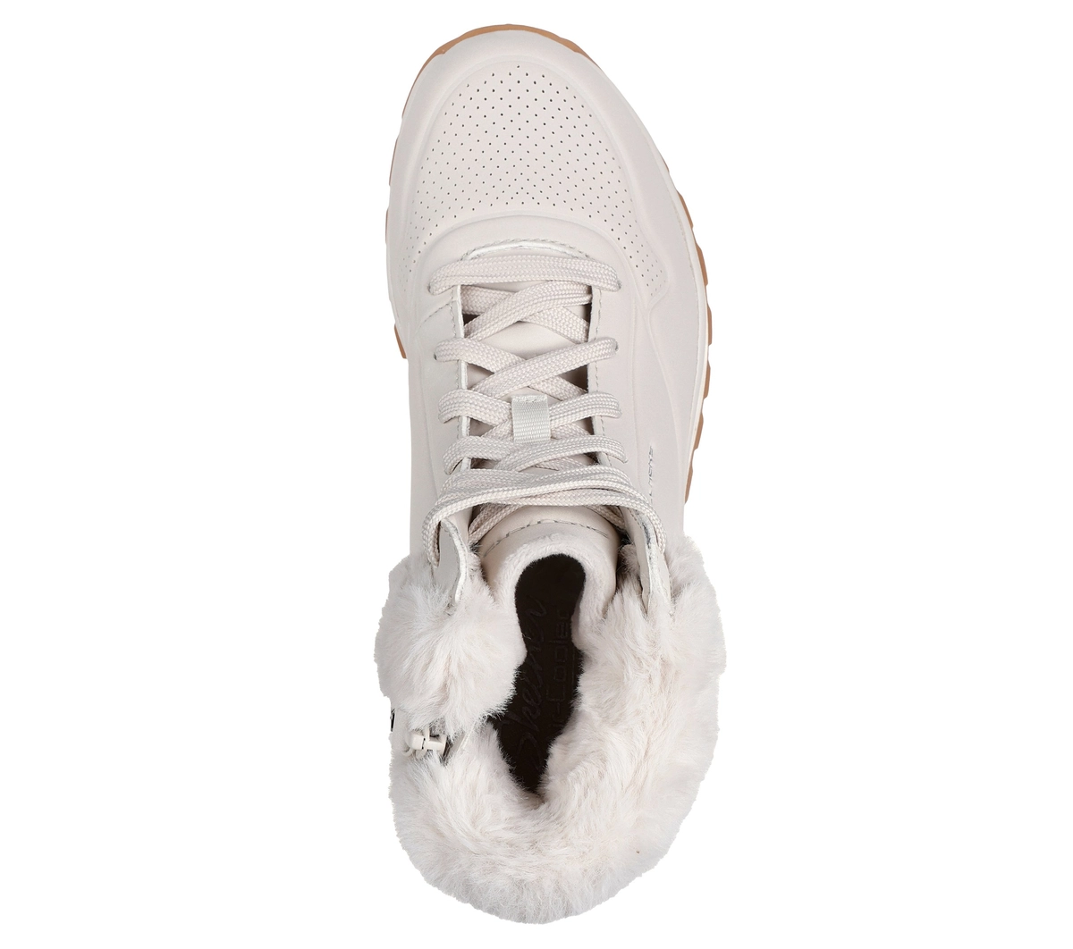 Get into the stylish touring spirit with the Skechers Street™ Street Uno Rugged - Fall Air. These fashionable knotted sneakers feature a perforated synthetic leather upper with faux fur trim, Skechers Air-Cooled Memory Foam® insole and a visible Skech-Air® cushioned midsole.