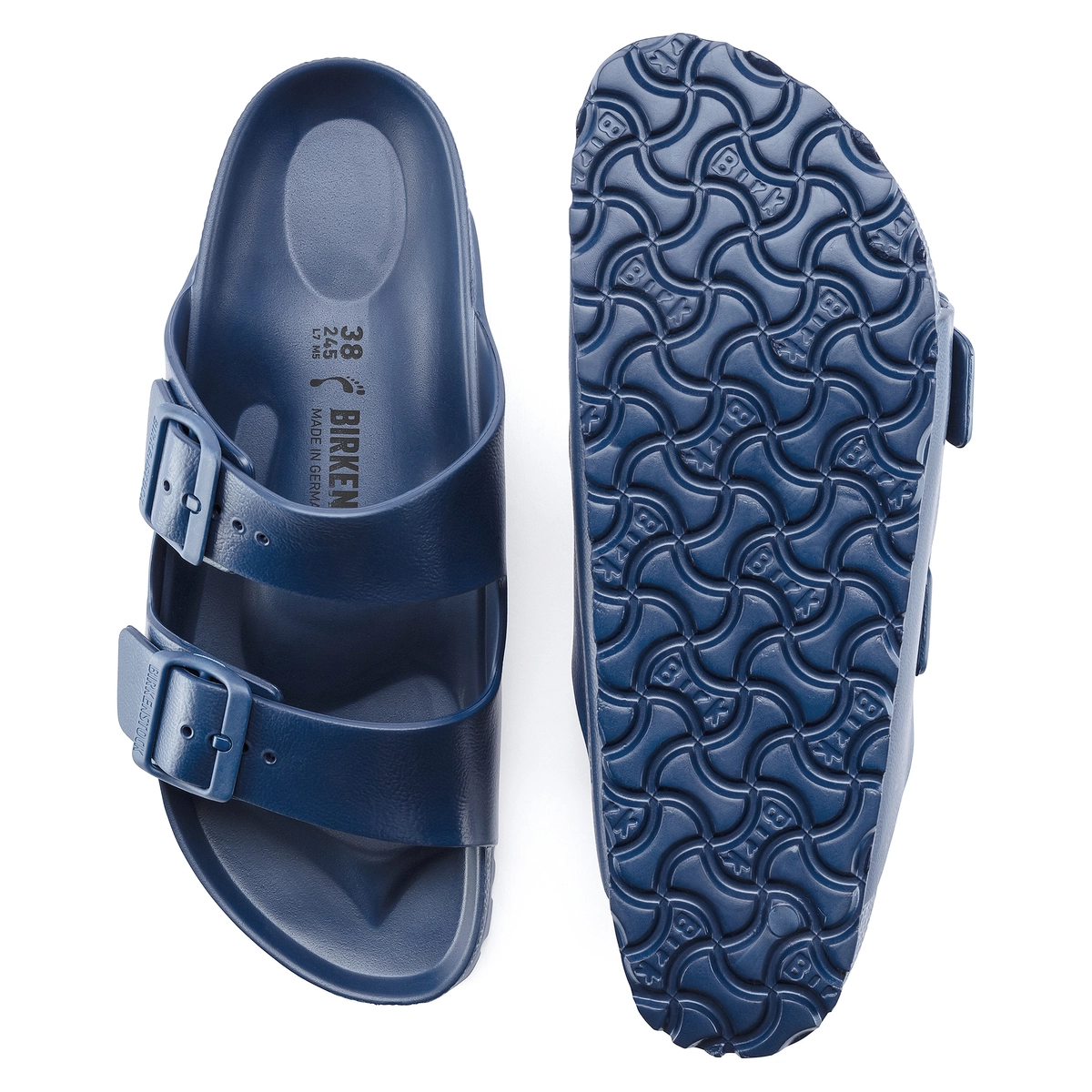 BIRKENSTOCK Arizona sandal is a true classic. This cork sandal patterned model is made of EVA foam. High-quality EVA plastic is odorless and tested for possible contamination, and it combines various properties: the plastic is very light and flexible, water-resistant and skin-friendly, and it offers the typical BIRKENSTOCK wearing comfort.