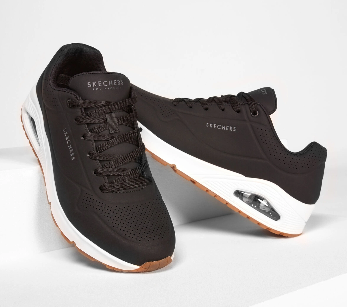 Classic cushioned comfort gets a refresh, resulting in the Skechers Street™ Street Uno - Stand on Air. These fashionable tied sneakers feature a smooth perforated synthetic leather upper with Air-Cooled Memory Foam® insole and a visible Skech-Air® cushioned midsole.
