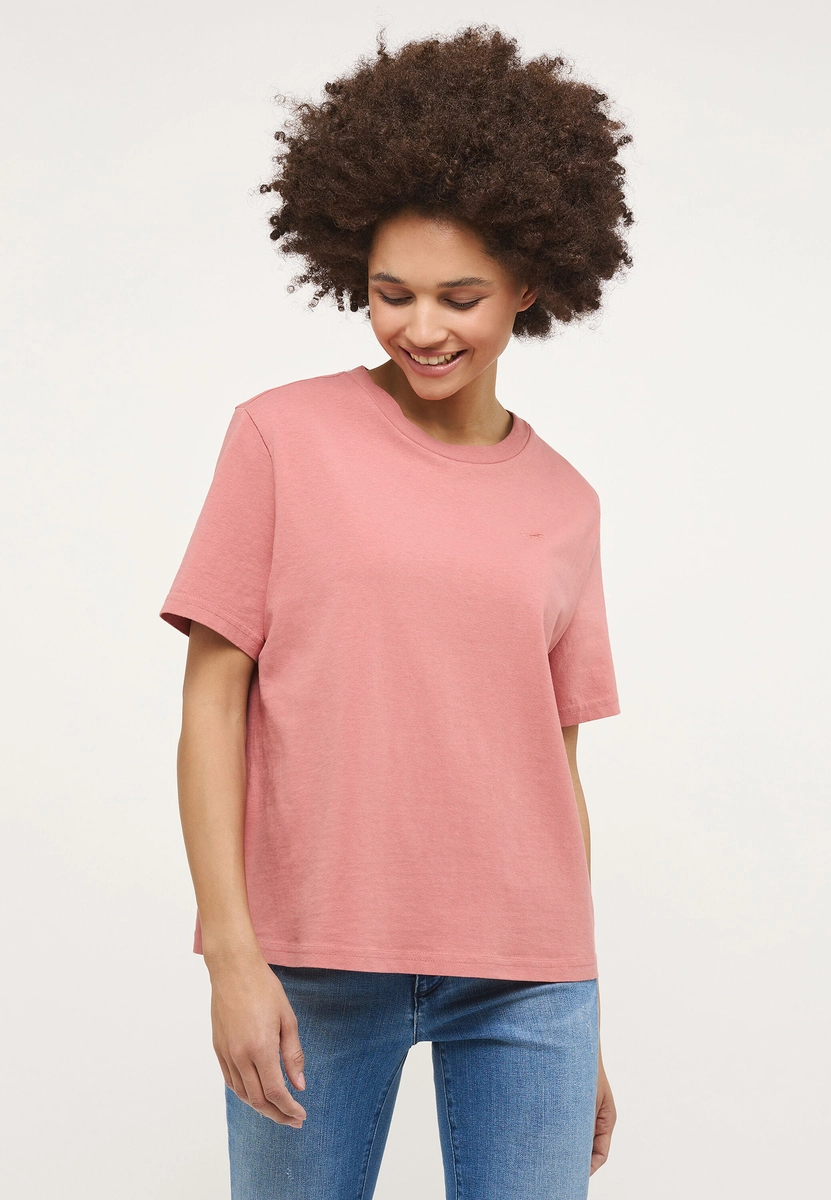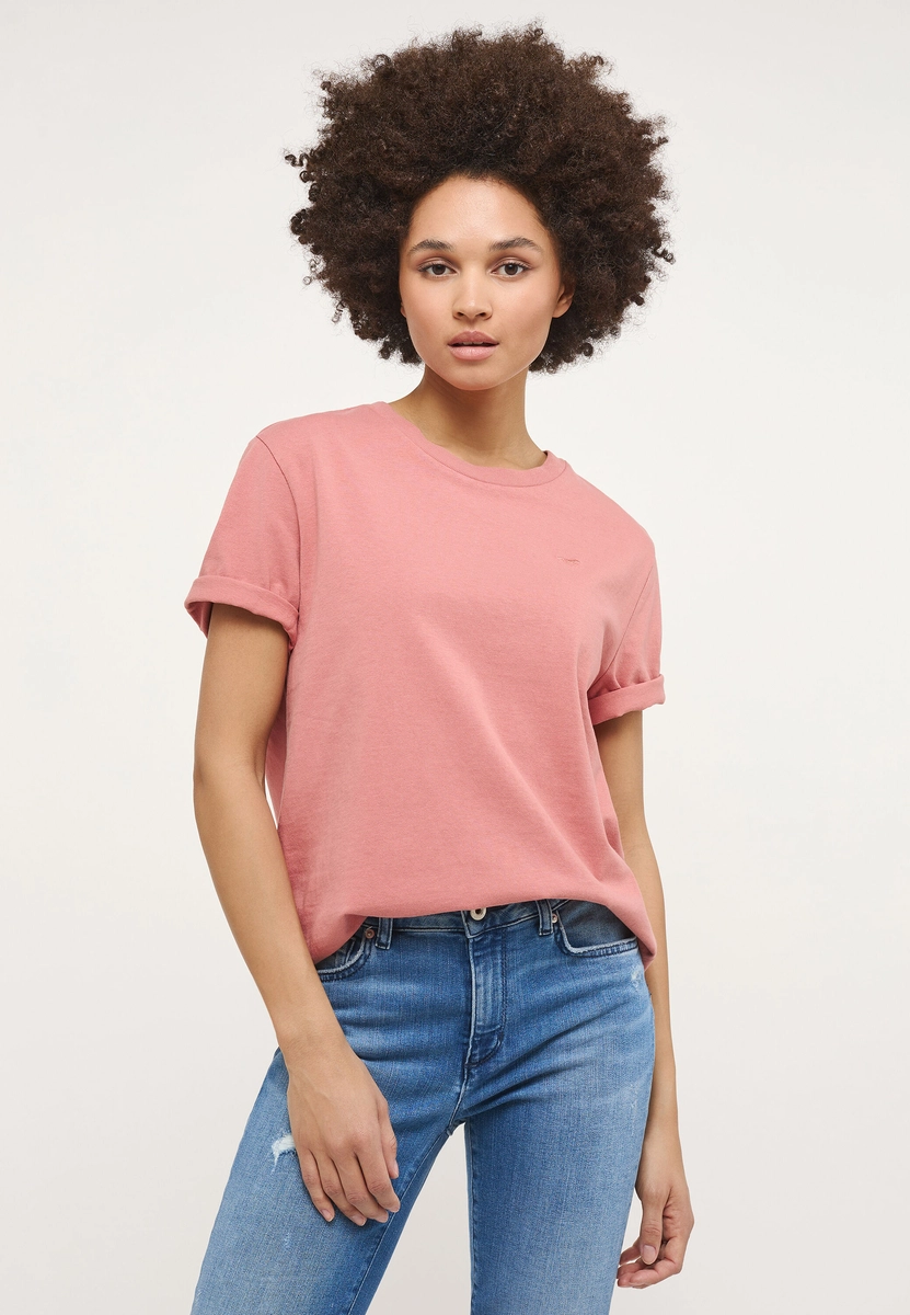 The basis for beautiful moments: the Mustang T-shirt. Shirt with round neckline features subtle embroidered label and turn-up cuffs. Loose fit and soft cotton will give you full comfort. Whether you pair the top with a skirt or jeans is entirely up to you. Be creative!