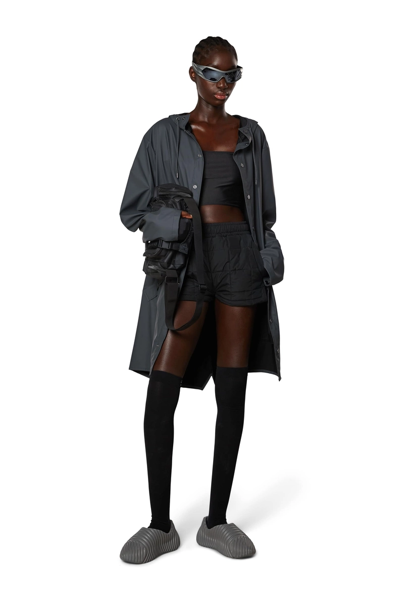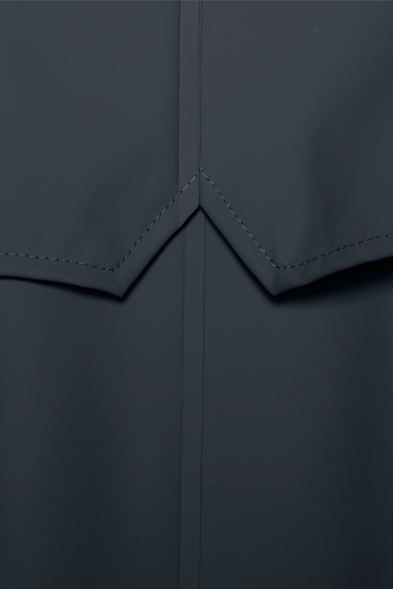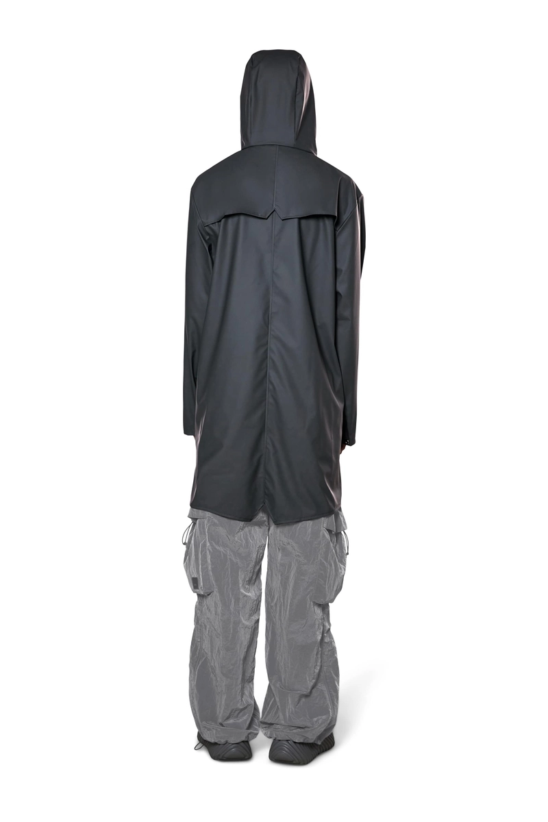 Long Jacket is a longer version of the classic Rain, Jacket design. This ever-contemporary unisex rain jacket delivers high functionality in a minimalist silhouette. Features include double-welded diagonal flap pockets, adjustable cuffs and fishtail piping. The whole look is completed with snaps, underarm loops and a back yoke with hidden slits.