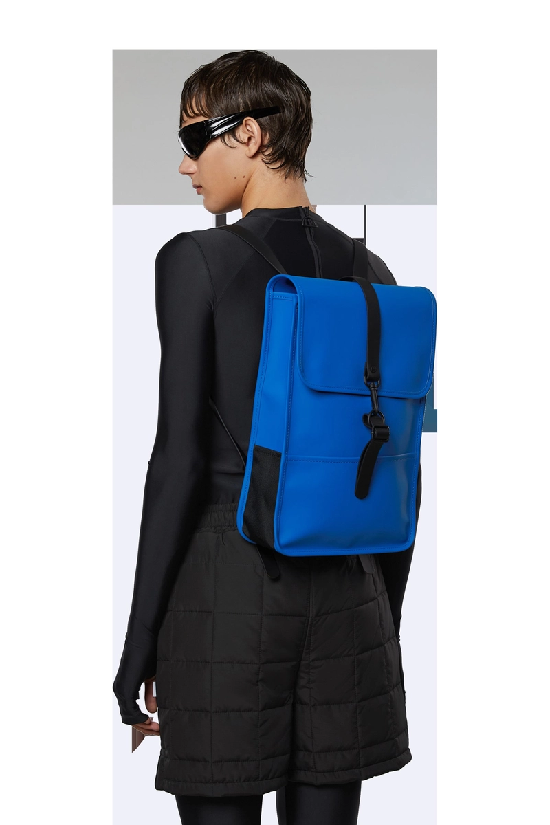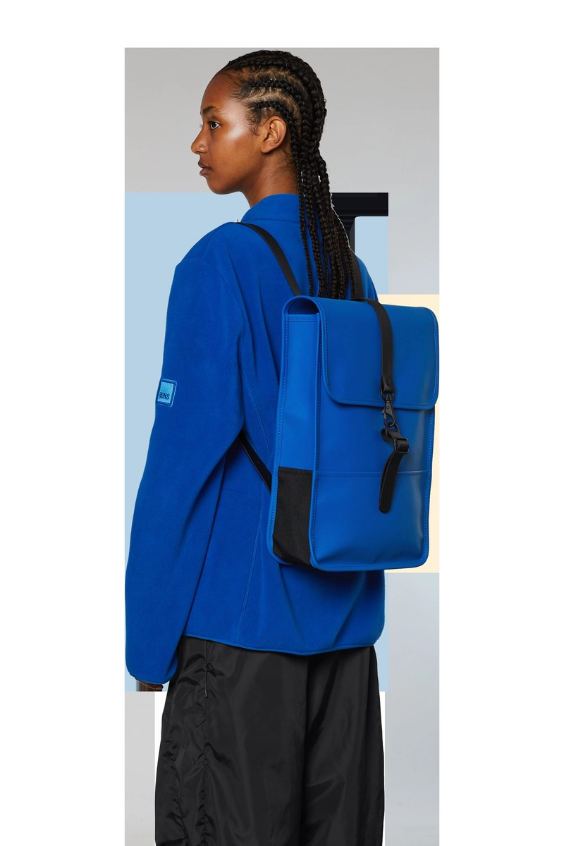 Plecak Mini jest wycięty z charakterystycznej dla Rains wodoodpornej tkaniny PU, zaprojektowanej z myślą o wytrzymałości, trwałości i gładkości.
