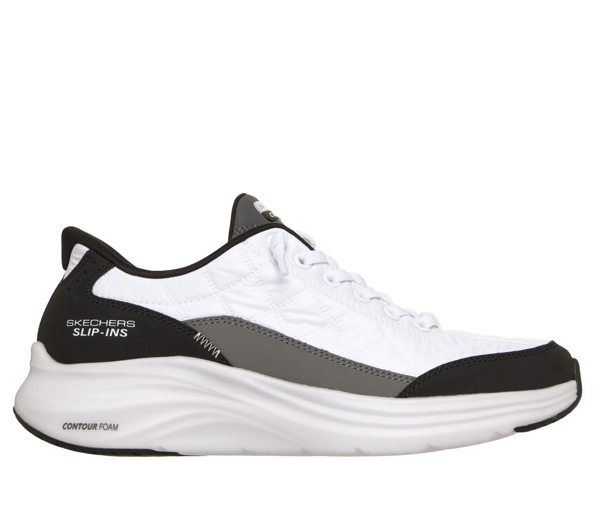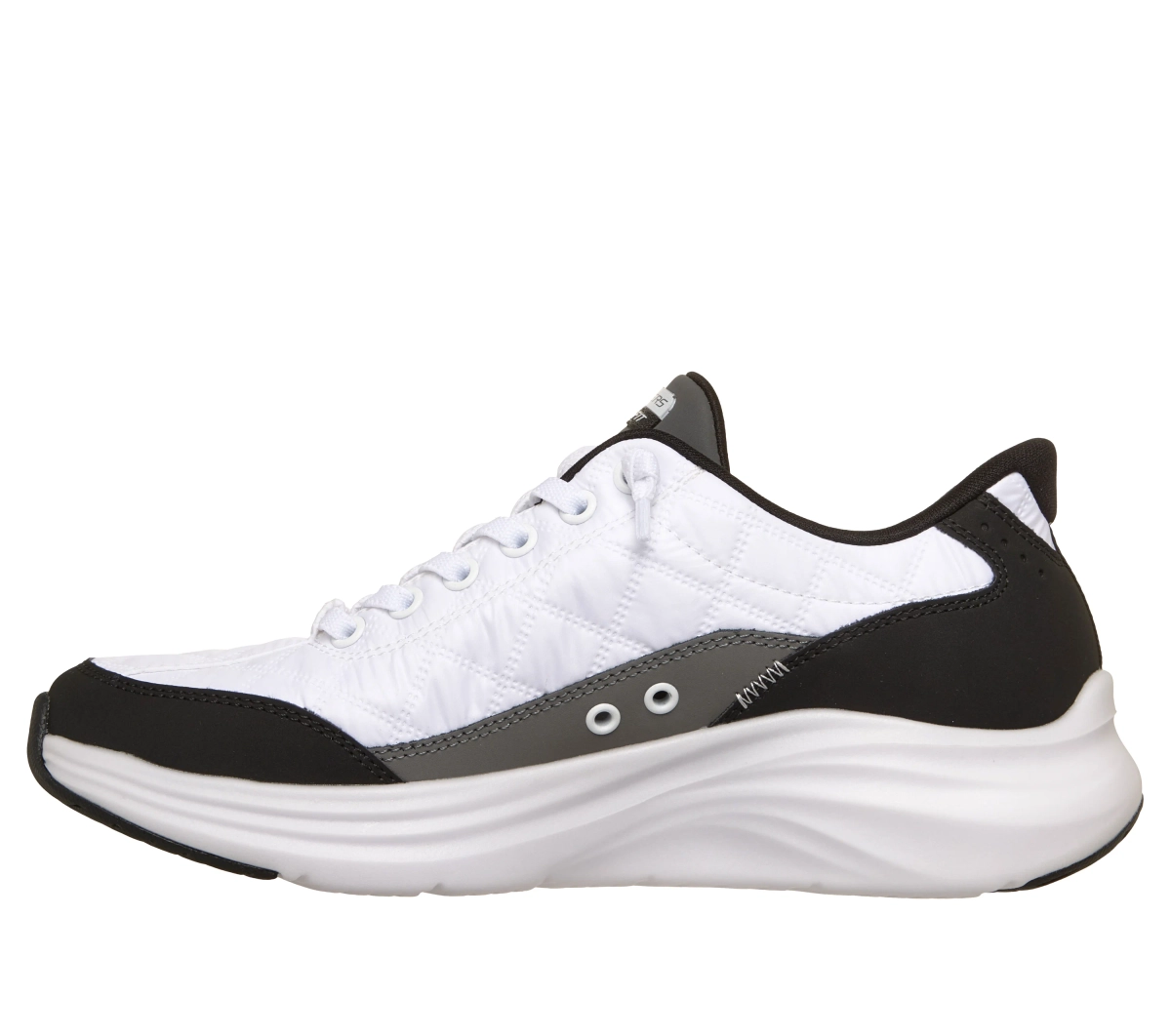 - Cholewka z pikowanej tkaniny z syntetycznymi nakładkami i podwiązanymi, elastycznymi sznurówkami Skechers No Tie Fit™ sznurowadła nigdy się nie rozwiązują