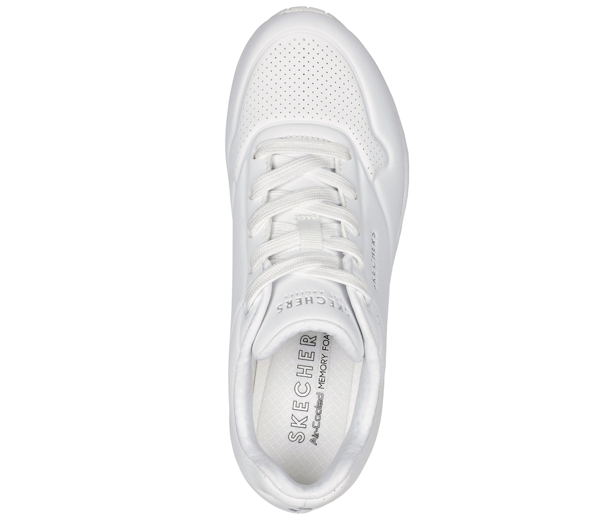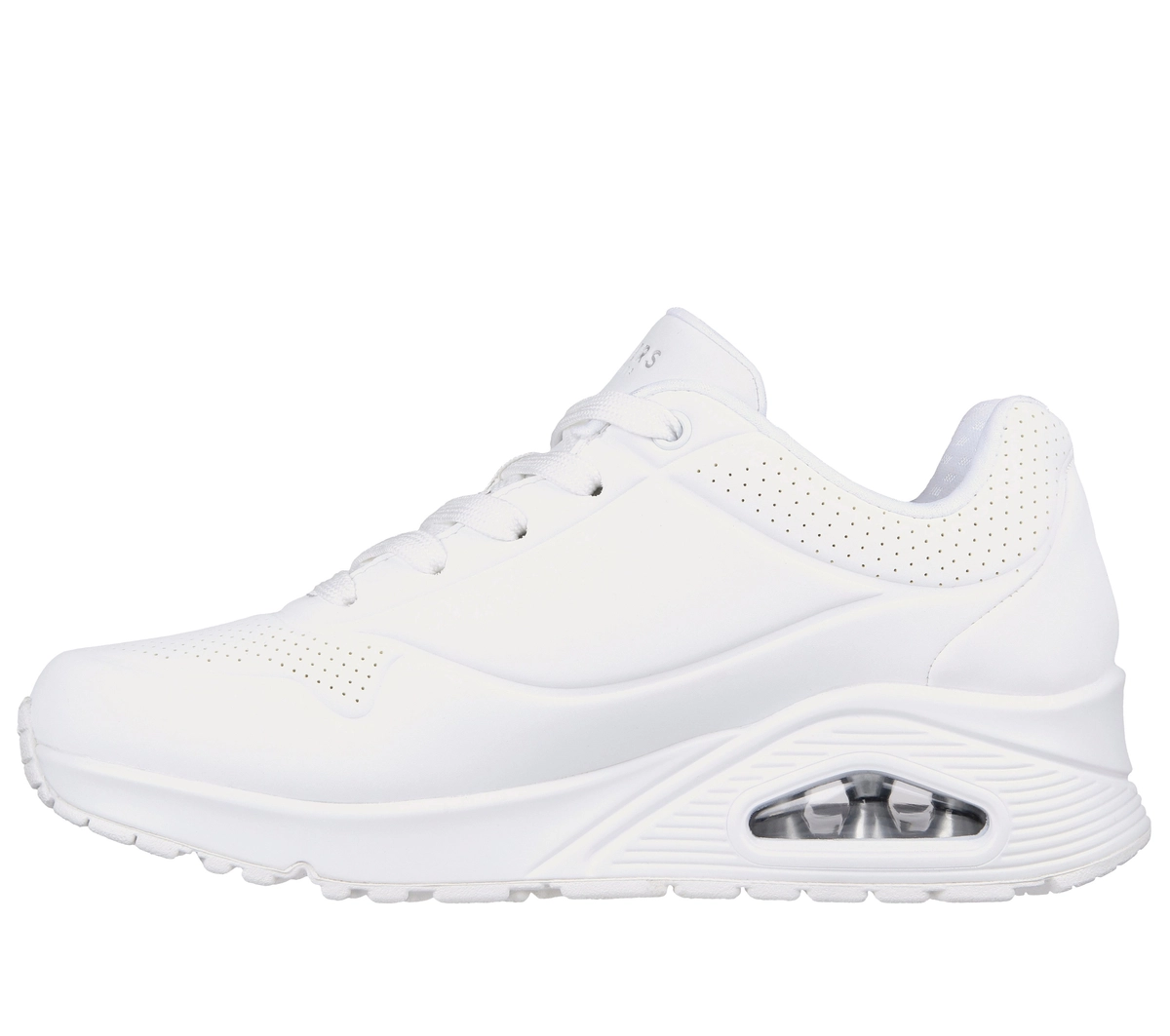 Nowa odsłona klasycznego, wygodnego obuwia z poduszką powietrzną Skechers Street™ Uno – Stand on Air. Wiązana, modna konstrukcja z gładką cholewką ze skóry syntetycznej i perforacją oraz wkładką z pianki Skechers Air-Cooled Memory Foam i widoczną podeszwą środkową Skech-Air z poduszką powietrzną.