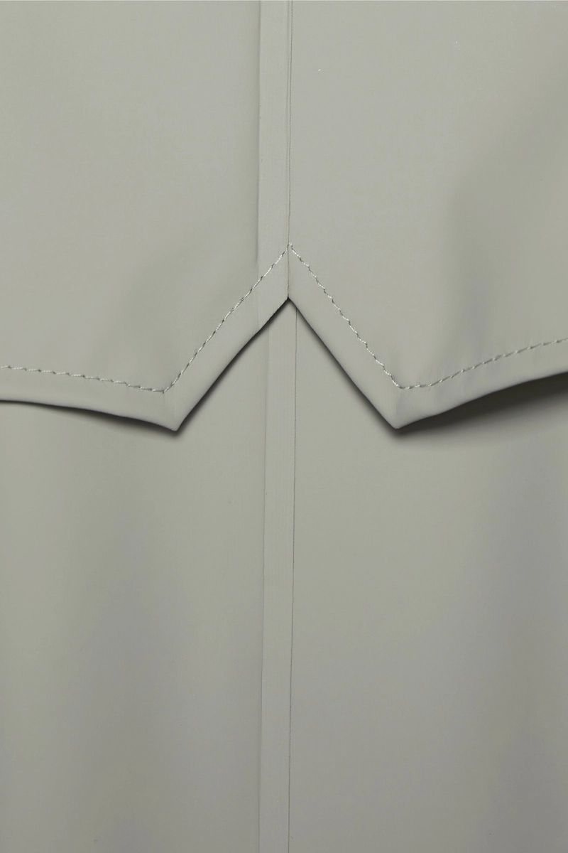Ta wodoodporna kurtka jest uszyta z charakterystycznej dla Rains tkaniny PU i ma szwy zgrzewane ultradźwiękowo. Wykończenie jest lekkie, miękkie w dotyku i elegancko się układa.
