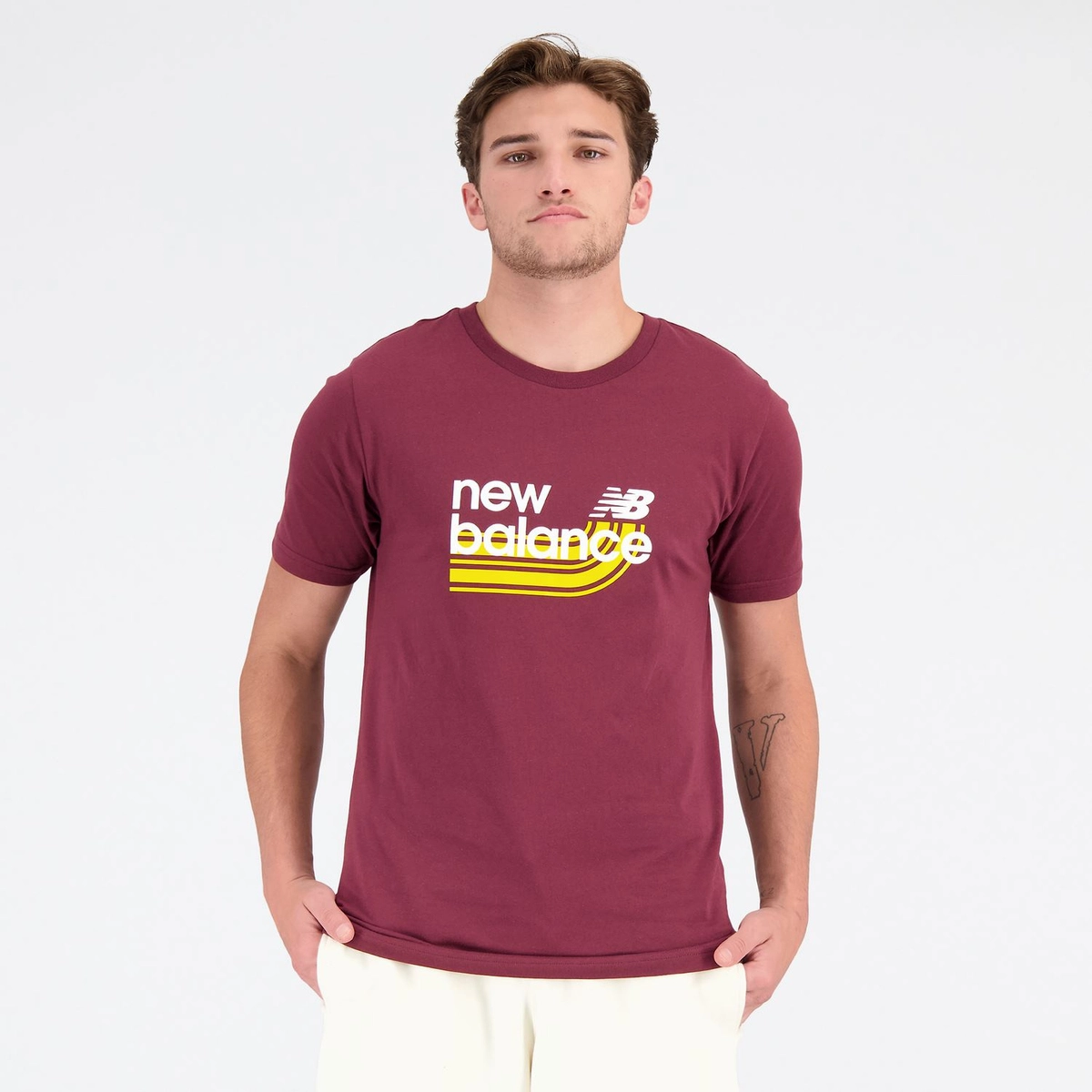 W centralnej części klatki piersiowej znajduje się grafika z logotypem marki i napisem New Balance.
