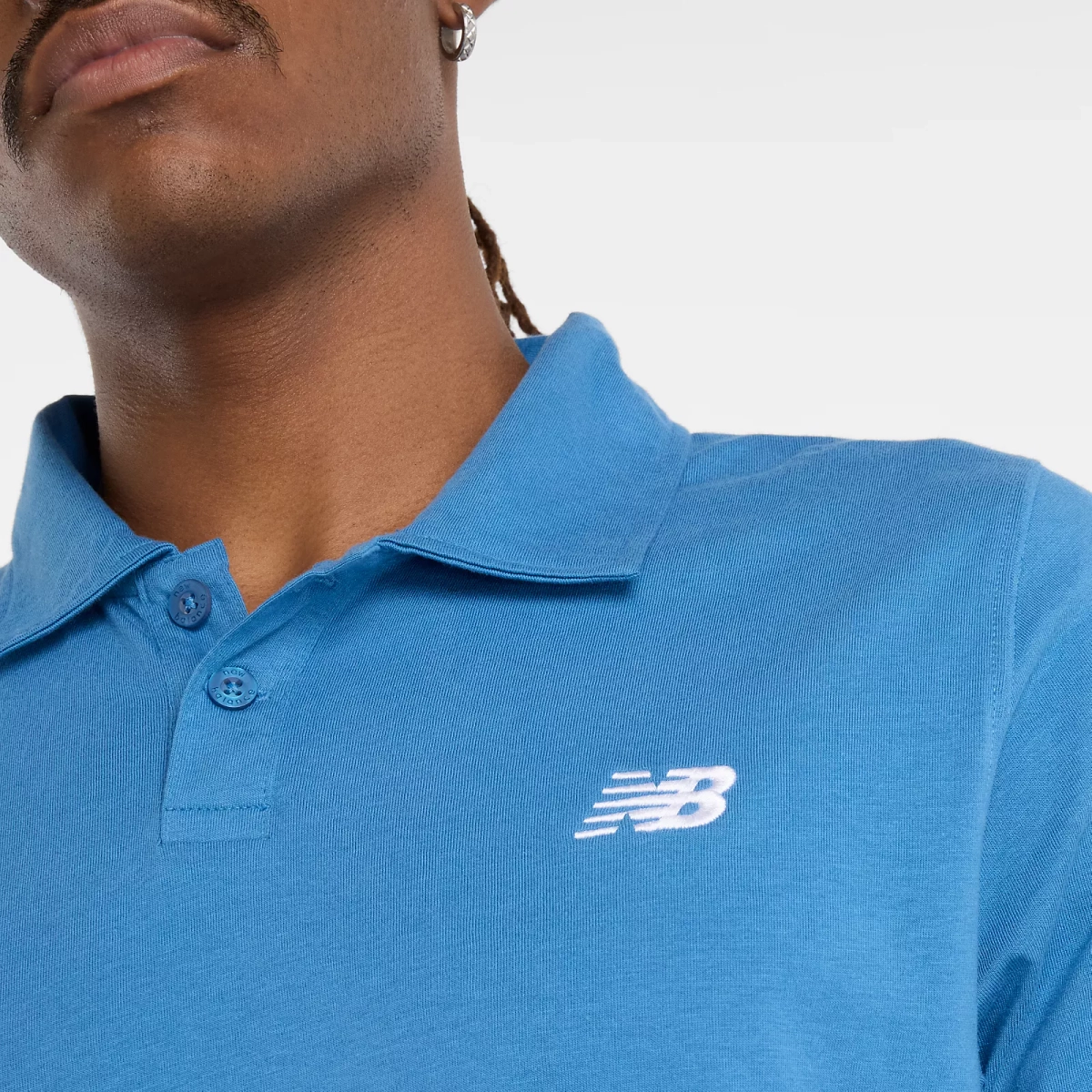 Męska koszulka polo New Balance z niewielkim logotypem na piersi. Odzież uszyto z miękkiego, przyjemnego w dotyku materiału. Męska koszulka polo będzie świetnie pasować do doskonale dopełni klasycznego obuwia.